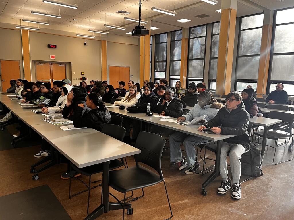 Recently Proctor students participated in a campus tour of Mohawk Valley Community College (MVCC) followed by an admissions presentation that was focused on supporting postsecondary planning and college readiness. During the visit, students learned about the Bridge Program, transfer credit opportunities and general studies degree requirements, as well as the benefits of the Educational Opportunity Program (EOP), including receiving an MVCC student ID and access to campus resources using their MVCC ID. Admissions staff also reviewed the 10% tuition guarantee and compared MVCC tuition costs to other colleges and universities, highlighting the affordability and value of beginning higher education at MVCC. Overall, the experience provided students with practical information about academic pathways, student supports and cost-saving opportunities while increasing confidence in the college transition process.